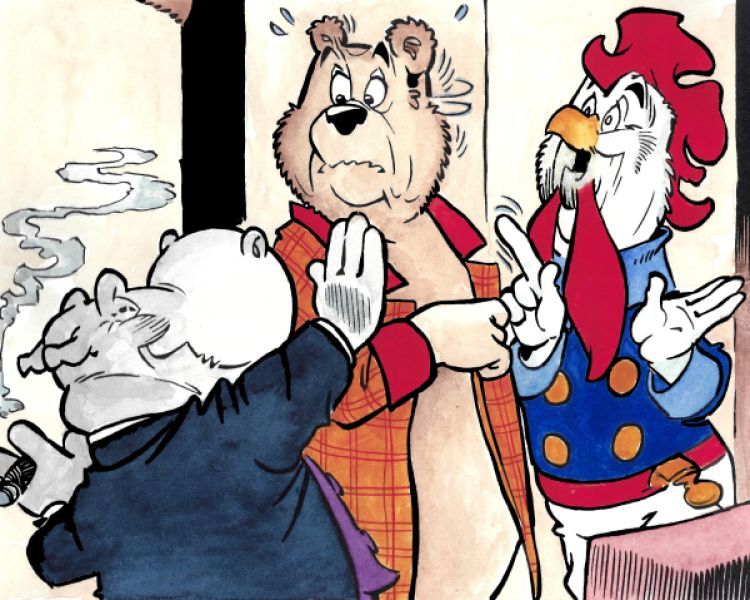 Paul de Haan heeft verschillende afbeeldingen geaquarelleerd uit de Bommelsaga.