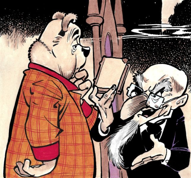 Paul de Haan heeft verschillende afbeeldingen geaquarelleerd uit de Bommelsaga.