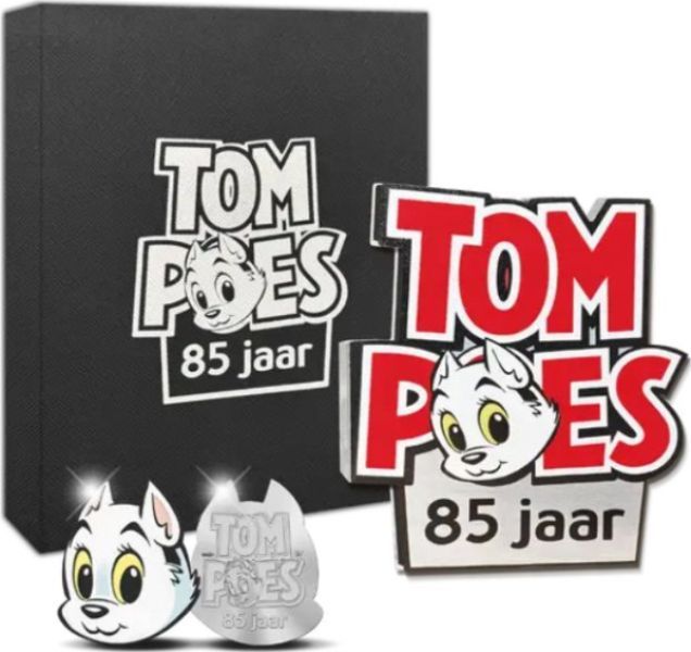 De 85 jaar Tom Poes Zilveren penning in hoofdvorm is een speciale uitgifte voor de verjaardag van Tom Poes. De zilveren uitgifte van 1 Oz puur zilver is gevormd naar het hoofd van Tom Poes en voorzien van de originele kleuren. Dit is nog niet eerder gedaan. De uitgiften verschijnen in een bijzondere verpakking gevormd naar het logo van Tom Poes. Uiteraard met genummerd Certificaat van Echtheid.